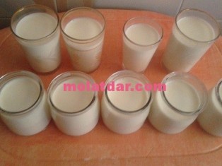 ناخد الخليط ديالنا ونضعه في كؤوس ونضع الكؤوس في الكوكوط للي بها الماء غليان ونسدو عليها ونضع الصفارة ونغطيها في مكان دافئ ليلة
