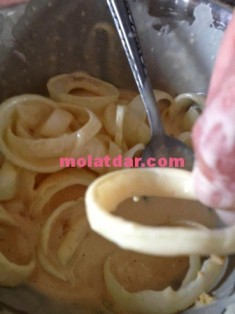 وكتغطسوا حلقات البصل في هاد المكون وبعدها في شابلور