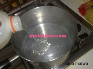 إو كنخليو الماء يسخن مزيان حتى يبانو لينا الفقاعات.