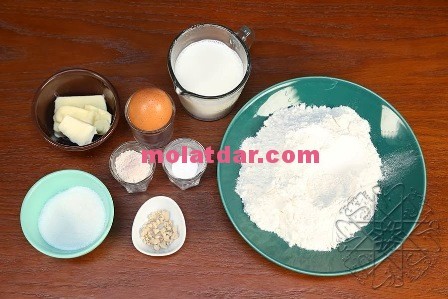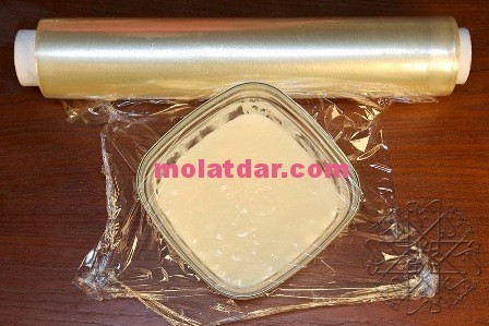 تذاب الخميرة الطرية في الحليب ثم تضاف للخليط مع التحريك المستمر لكي لا تتشكل حبيبات في العجين.