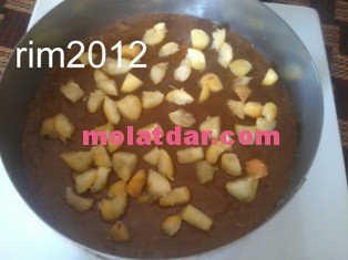 ويدهن بقليل مربى مشمش طبقة رقيقة وينثر عليه قطع مشمش