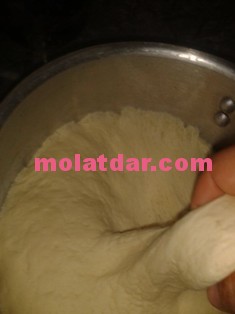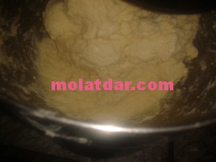 كنخلطو العناصر معا بعضياتها مزيان اكنديروها فالعجانة او كندلكوها خاصنا ندلكوها مزيان اتجي العجينة مرخوفة