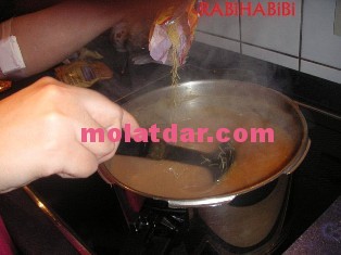 ثم نرميوا الشعرية الرقيقة دغيا كتطيب ونحركوا بيضة مع التحريك، انا ما كانش عندي البيض وما كاينش للي يتسخر لي ههه شفتوا الغربة ههه.