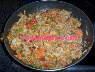 والخضار المشكلة .ثم العطرية .صلصة الطماطم ثم شوية ماء