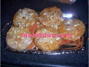 وشوية ماء لالصاق الورقة + زيت زيتون + لوز مقلي للتزيين