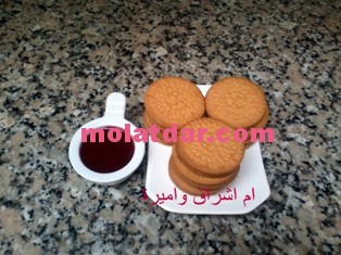 نطلق الكوك اللي صوبنا في المرحلة الاولىبين 2 بلاستيكات ونشكل البسكوي على الشكل اللي امامنا
