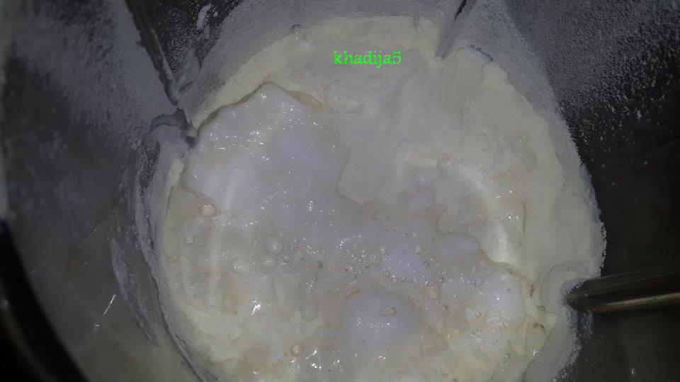 انعمل الكل فالخلاط الكهربائي يطحن مزيان ثم يصب في علبة ويوضع في الثلاجة مدة 4 ساعات حتى يجمد الا بغينا انقسم الخليط على 2 واحد يبقى كما هو والثاني +الشكلاط