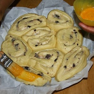 بعد ذلك ندهنوها بالبيض و ندخلوها إلى فرن على درجة 180 لمدة 15 دقيقة