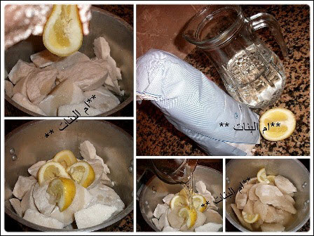 نعصر عليه عصير النصف ليمونة ثم نقطعها و نضيفها