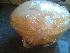 نغطيها بالبلاستيك الغذائي ونتركها ترتاح مدة ساعة تقريبا