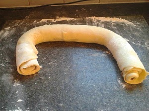 ونحن نقطع العجين ندخل قطعة إلى الداخل ونخرج قطعة
