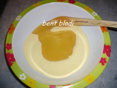 كنعملي السميدة مع الملح في اناء وكنضيفولو الزبدة والزت وكنبسوه يعني نخلطوهم ونوضعوهم في شي بواطة ونغطيو وندخلوهم الثلاجة ليلة كاملة.