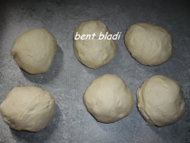 في اناء نضع كل مقادير العجين نعجنوها بالماء الدافئ وندلكوها ونتركوها على جنب حتى تخمر