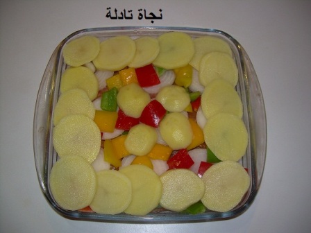 الى بغينا نوجدوه بسرعة نسلقو بطاطا شوية و الفلفلة و البصلة نحمرهم في المقلة عاد نضيفهم فوق الكفتة