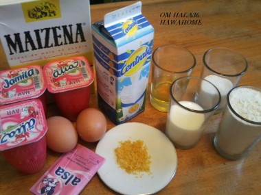 نأخذ 3 رايبي ،3 معالق مايزينا أوالنشا،نخلطهم ونضعهم فوق نار هادئة حتى يعقد