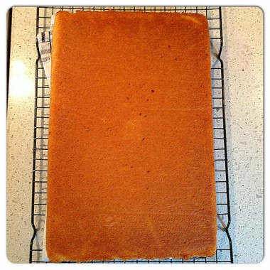 بعد خروج الكيكة من الفرن تترك لتهدأ فى الصينية ،ثم نحضرشبكة سلك ونضع عليها فوطة مطبخ نظيفة،ونقلب الكيكة فوق الفوطة،وتم عمل هذة الخطوة،حتى لاتظهر علامات الشبكة على سطح الكيكة،علشان لما تقطع بعد ذلك قطع جاتوة لايكون فى اى خطوط على وجة الكيك