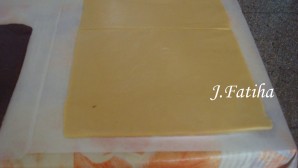 نبسط النصف الاول من العجين و نضع فوقه الحشوة