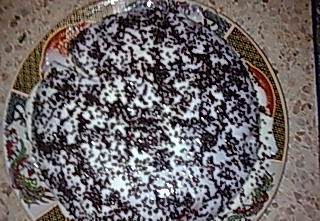 كنخدو البيض نطربوه مع سكر و نضيف الزيت و لقهوة و كوبيل و نخلط مزيان تم نضيف الخمرة و الدقيق متوليش جارية بزاف و كاسحة بزاف و ناخد كوكوت ندهنوهة بزيت أو دقيق أو نصبو الخليط فيها أو نسدو مزيان بدون سفارة كنديرها على نار مهيلة بزاف أو ملي طيب كنخدو كاس ديل لحليب + 1 معلقة ديل نشا+ 1 معلقة سكر أو أو نحركهم مزيان أو نضرم فوق نار حتى اعقد الخليط أو نكبه فوق الكيكة أو نزينها بشكلات فيرمسل.