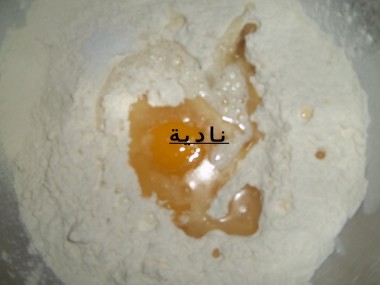 نسرحو العجينة من بعد نوضعوها في مول ونخويوعليها الحشو ونوضعو عليها طبقة من العجينه ندهنوها بالبيض ونتقبوها من الوسط