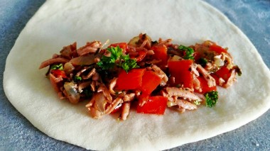 تعجن المقادير وتترك ترتاح لمدة 20 دقيقة بعد ذلك نعمل منها كويرات تسرح وتعمر بحشوة حسب الاختيار ثم تخبز في مقلاة على نار هادئة.