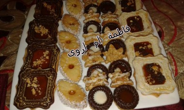 رابعة ماركرين (أنا درت بونا). 2 كيسان سكر صقيل.2 كيسان ما عامرينش زيت أو كاس و نص.2 فاني.أو روح فاني السائلة 4 بيضات.قبصة ملح.الدقيق الخاص بالحلويات حسب الخليط.مافيهش الخميرة بثاثا تكون العجين رطبة.ندخلوها للثلاجة ترتاح على الأقل ساعة.من بعد نسرحوها بين جوج بلاستيكات.و نطبعوها حسب الرغبة.نطيبو الصابلي و بلا منحمروه بزاف.و التزيين حسب الرغبة.أنا دوبت الشكلاط مع شوي الزيت في حمام مريم و عمرتو في المول شفاف ودخلتو لفريكو حتى برد و لصقتو بشكلاط ذايب.و درت فوسطو الكراميل و كاوكاو محمر و مهرمش.و درت الملمع الغذائي للشكلاط.أما الشكل الثاني زنتو بكوفتير المشماش الجاري و الكوك.و الشكل الثالت شكلاط في مول خاتم سليمان و كاوكاو و الكراميل و الصور كتوضح أكثر.