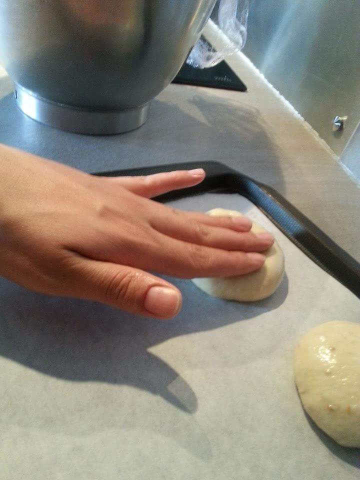 العجين يكون مطلوق شوية وهاد هو السر باش يجي مفشفش من الداخل نعمل شوية الزيت في ادينا ونحاول نجمع الخليط و نترك يخمر مزيااااان من بعد نأخد صينية ونعمل فيها الورق الخاص بالطبخ أو نذهن بالزيت نشكل كرات ونبسطهم مزيان يكونو متباعدين ونخليهم يخمرو مرة أخرى ولكن غي نشوفهم طلعو شوية ندهنهم بأصفر البيض ونرشهم بالجنجلان واللوز وندخلهم الفرن حتى يتحمرو مزيان وبالصحة والراحة.