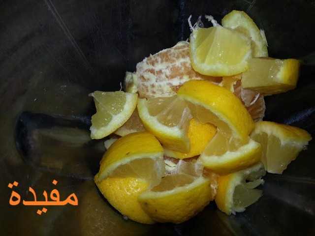اول حاجة كنديرو فالخلاط ليمونة منقية وحامضة بقشورها ونزيدو نصف لتر من الماء نطحنو الكل ونصفيوه